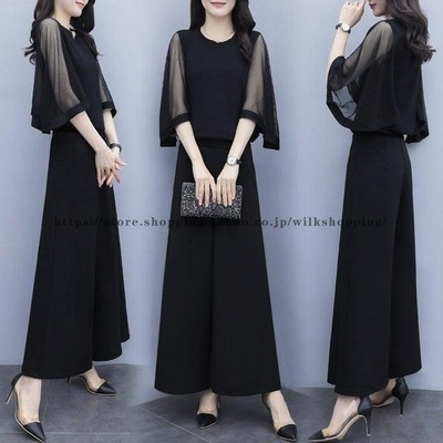 一部 かっこいいパンツドレス袖あり黒セパレートパーティードレス結婚式お呼ばれドレス30代40代50代黒ドレスセットアップ大きいサイズ3l4l 通販 Lineポイント最大get Lineショッピング